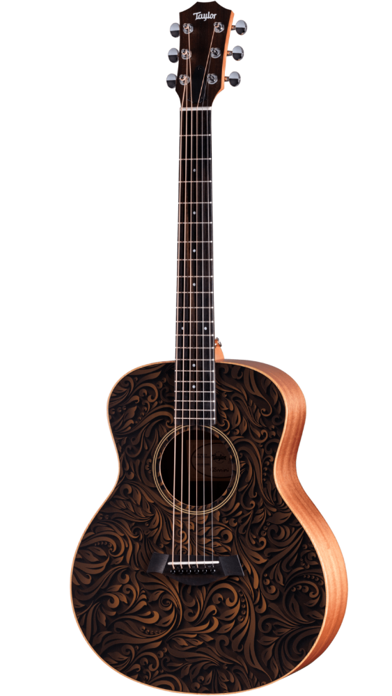 Featuring a vintage-inspired soundboard design with a bold, modern personality, the GS Mini-e Special Edition, Paisley Burst brings an ornate aesthetic to the beloved GS Mini family. An elaborate paisley pattern on the spruce top, rendered in rich brown hues, creates a striking depth that exudes classic elegance while remaining fresh and contemporary. Behind its artful exterior, this special-edition model features a solid torrefied Sitka spruce top paired with layered sapele back and sides. It serves up a vibrant, balanced tone with plenty of projection and a sweet, played-in sound right out of the box, thanks to the special roasting process for the top. Together, the scaled-down Grand Symphony body, slim Taylor neck with a narrower nut width, and 23-½-inch scale length ensure easy fretting and a fun, comfortable playing experience. Equipped with an ES-B pickup and built-in digital tuner for amplified play, the GS Mini is ready for any musical adventure—whether you’re jamming at home, playing around the campfire or taking the stage. It comes with a structured gig bag for storage and easy transport. • MFSKU GS Mini-e Paisley Burst • UPC 887766136897