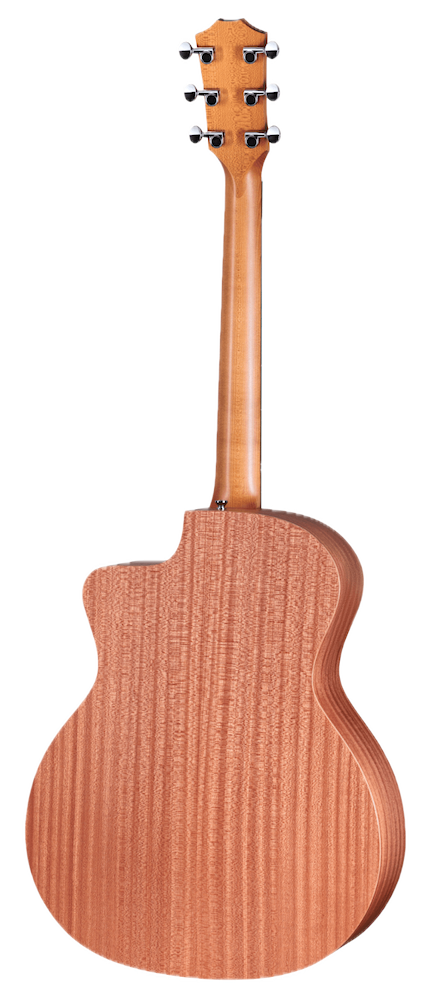 Grand Auditorium body along with a solid-wood top and layered sapele back and sides. Solid mahogany top for midrange punch and projection. Versatile, comfortable Grand Auditorium body shape.. Taylor neck for smooth playability.. Features Fishman Sonitone GT-2 pickup for plugged-in play possibilities. Includes Taylor gig bag for transport! • MFSKU 24ce • UPC 887766138358