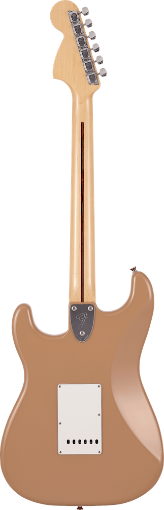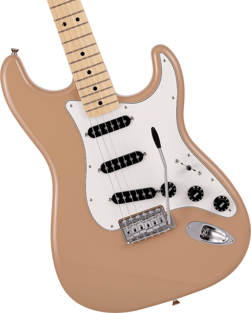 Fender Made in Japan Limited International Color Stratocaster Maple Fingerboard in Sahara Taupe. The Made in Japan International Color Series revisits a rare coordinate in the logbooks of Fender history and puts a bright, unique and beloved series back on the map. The bold and captivating International Color collection originally debuted over four decades ago and was produced for less than one year. Introduced in 1981 with appointments steeped in '70s style alongside a fresh palette of colors named for exotic and provocative spots on the map, the International Colors are now coveted by collectors and prized for their exotic beauty and rarity. Available once again in a fittingly limited run, the Made in Japan International Color Series combines vibrant vintage Fender vibe with Made in Japan craftsmanship to produce a transcontinental treasure. • MFSKU 5641102385 • UPC 717669556969