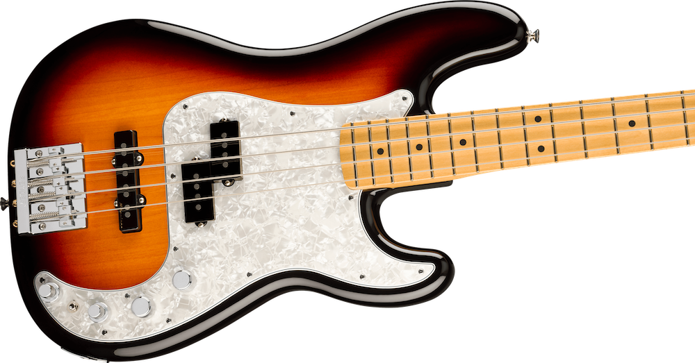 The Player II Modified Active Precision Bass is a classic bass with the modern player in mind. Everything about the neck is designed for fast and fluid playability, from the Modern “C”-profile with silky satin urethane finish on the back to the comfy 9.5”-radius slab rosewood or 1-piece maple fingerboard with smooth rolled edges and 20 medium jumbo frets. The alder body provides classic Fender punch and is available in a variety of exciting new finishes. The Player II Modified Precision Bass Neck and Noiseless Jazz Bass Bridge Pickups deliver classic Fender thump and growl while eliminating unwanted noise and the all-new active preamp with passive tone control and improved EQ section gives players the perfect tool to dial in their favorite tones. The 4-saddle HiMass bridge, tapered-shaft tuners and TUSQ nut all combine to keep tuning incredibly stable for even the most demanding performances. Upgrade your arsenal today with the Player II Modified Active Precision Bass to take your performance to the next level with Player II Modified. Featuring key upgrades for the modern guitarist and bassist, these versatile instruments are designed to handle anything you can throw at them. • MFSKU 0147492300 • UPC 885978398904