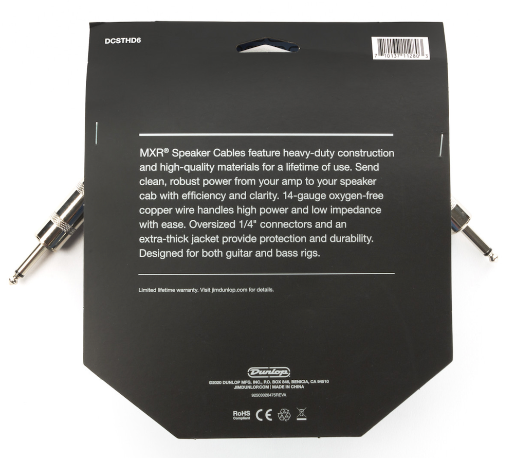 This high definition speaker cable is MXR-approved to carry a pure signal from your amp to your speaker so that you can hear your tone as it's meant to be. This is a 6 foot speaker cable with 1/4 inch TS ends. • MFSKU DCSTHD6 • UPC 710137112803