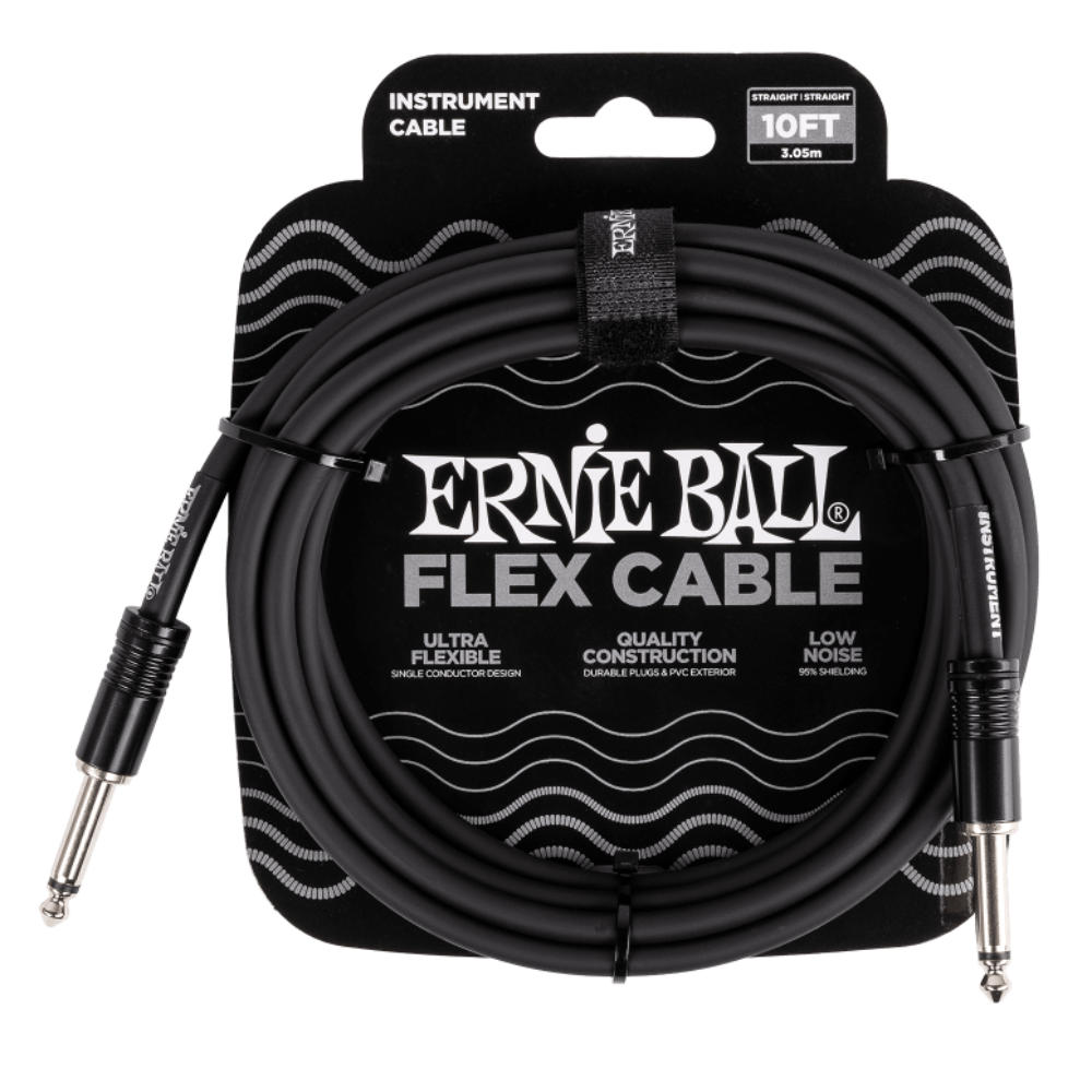 Ernie Ball P06434 FLEX Black 10 foot Straight to Straight Instrument Cable