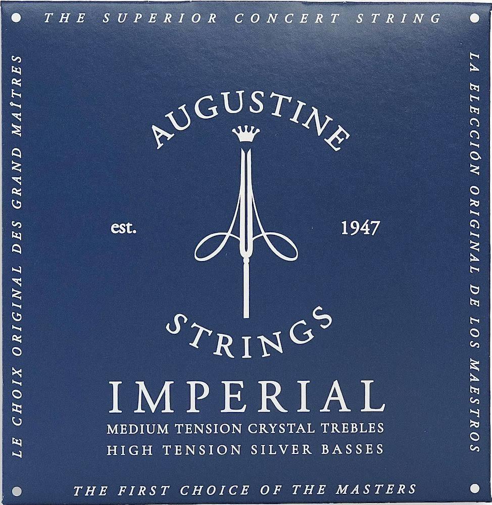 Augustine Imperial Blue Classical Strings, High Tension. Augustine Classical Strings are designed to give you endless possibilities that will best suit your particular needs. The best way for you to decide which of our strings sets will sound best on your guitar is simple: try them and let your ears be the judge. • MFSKU AUGIMPBLU • UPC 639690002065