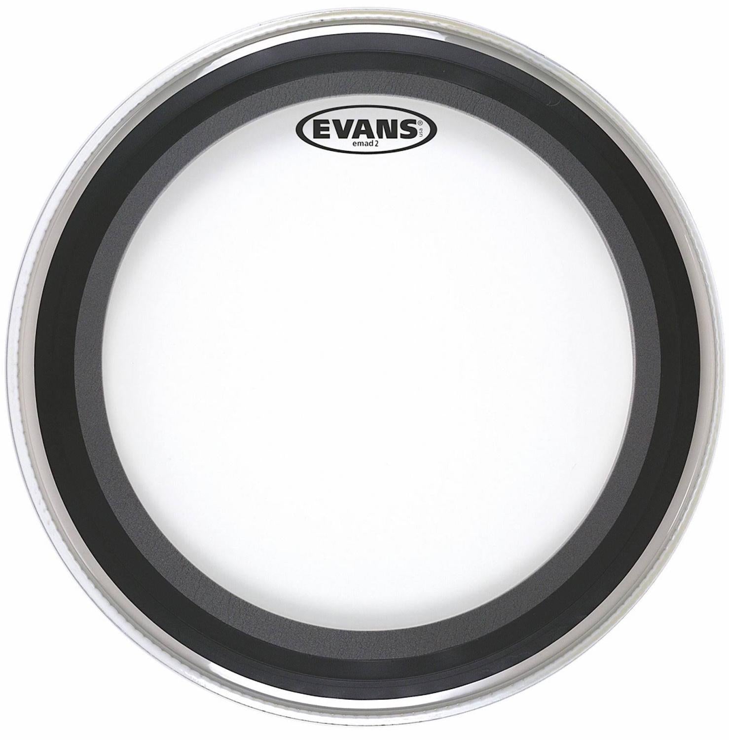 Evans EMAD2 series features two plies of film. The outer ply of 7mil and an inner ply of 10mil film provides an enhanced attack, focus and durability. The unparalleled industry standard Externally Mounted Adjustable Damping (EMAD) system allows the player to adjust attack and focus. • MFSKU BD24EMAD2 • UPC 019954951283