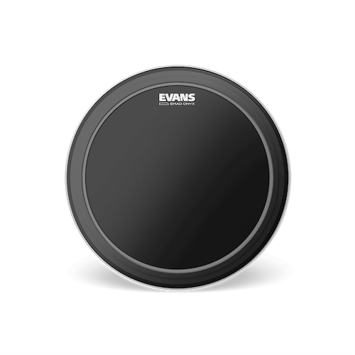 Punchy and warm. See what Onyx can do for you. Evans EMAD series features a single ply of 10mil film providing an ideal balance of punch, power and low-end. The unparalleled industry standard Externally Mounted Adjustable Damping (EMAD) system allows the player to adjust attack and focus. The Onyx version is the perfect aesthetic and sonic compliment to the Onyx tom heads and Onyx bass resonant. • MFSKU BD22EMADONX • UPC 019954960032