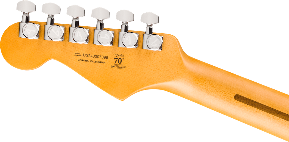 The Fender American Ultra II Stratocaster HSS features a select alder body with sculpted body contours. For effortless playability, the quartersawn maple neck features our Modern D profile and smooth Ultra Satin finish. Ebony or quartersawn maple 10”-14” compound radius fingerboards feature Ultra rolled edges, medium-jumbo frets, Luminlay side dots and Graph Tech TUSQ nuts. The tapered neck heel and sculpted body contours allow unparalleled access to the higher register. • Select Alder Body with Ultra Contours and Sculpted Neck Heel