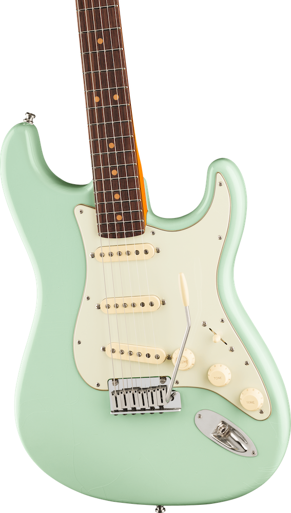 Under the hood, Pure Vintage ’61 Strat deliver classic Fender tones, from sparkling cleans to rich, expressive leads. Performance hardware includes a precision-engineered 2-Point American Ultra synchronized tremolo with polished stainless steel block saddles, cold rolled steel block, and deluxe locking tuners for quick string changes and superior tuning stability.
