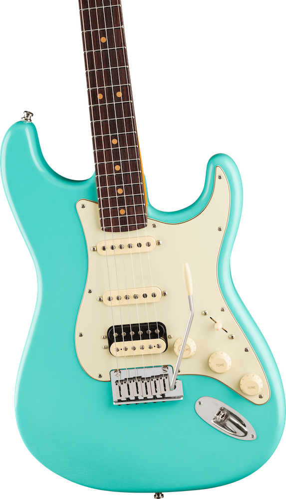 Under the hood, Pure Vintage '61 Strat single-coils deliver classic Fender tones, from sparkling cleans to rich, expressive leads while the Haymaker humbucker brings powerful, articulate crunch. Performance hardware includes a precision-engineered 2-Point American Ultra synchronized tremolo with polished stainless steel block saddles, cold rolled steel block, and deluxe locking tuners for quick string changes and superior tuning stability.