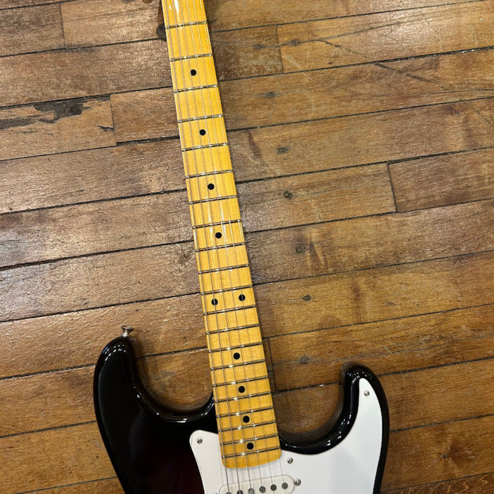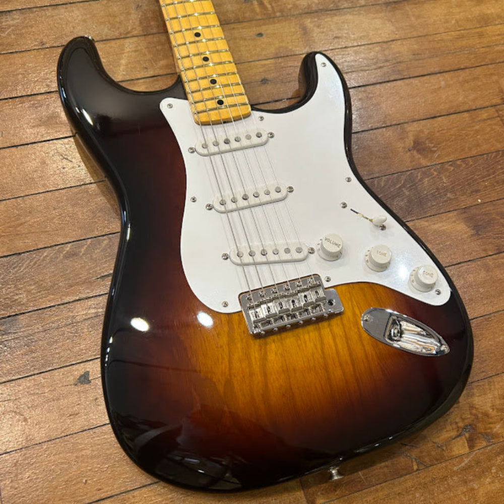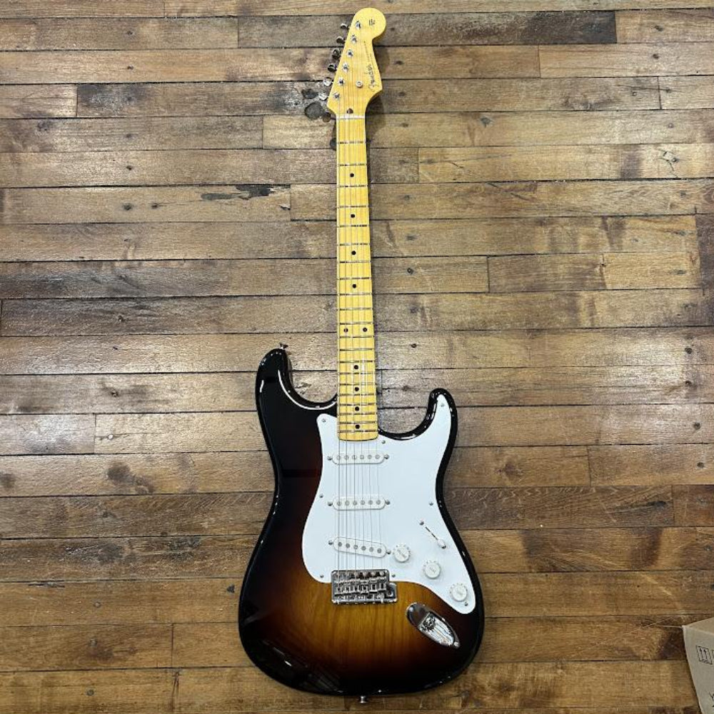 To celebrate 70 years of the Stratocaster, Fender Custom Shop introduces the Limited Edition 70th Anniversary 1954 Stratocaster. Its two-piece select ash body (with offset seam on the treble side) resonates with singing highs, sweet midrange and tight lows, and wears a gorgeous Wide Fade Two-Color Sunburst lacquer finish in NOS. Its one-piece quartersawn maple neck is fashioned with a special 70th anniversary Soft “V” profile based on an incredible neck from July 1954. This is topped with vintage compound-radius fingerboard (7.25” to 9.5”) with 21 medium vintage (47095) frets and a 1.625” bone nut. Three Custom Shop hand-wound ’54 Strat pickups deliver that classic Strat voice with clear, bell-like highs, routed through vintage '54 wiring with wax paper cap and five-way switching. Other premium features and authentic first-year appointments include a single-ply white pickguard and serial-number back plate, 1954-style ABS white pickup covers and control knobs, Custom Shop vintage synchronized tremolo bridge, vintage-style tuners, disc string tree, special 70th Anniversary Stratocaster neck plate, deluxe embroidered hardshell case, special “case candy” kit and certificate of authenticity. • MFSKU 9236091141 • UPC 717669959357