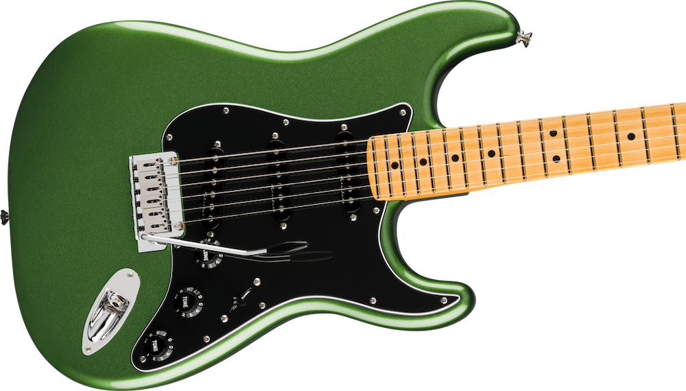 Gear up and get ready to take your performance to the next level with Player II Modified. Featuring key upgrades for the modern guitarist and bassist, these versatile instruments are designed to handle anything you can throw at them. The Player II Modified Stratocaster is a classic guitar with the modern player in mind. Everything about the neck is designed for fast and fluid playability, from the Modern āCā-profile with silky satin urethane finish on the back to the comfy 9.5ā-radius slab rosewood or 1-piece maple fingerboard with smooth rolled edges and 22 medium jumbo frets. The alder body provides classic Fender punch and is available in a variety of exciting new finishes. The Player II noiseless pickups deliver classic Strat chime and sparkle while eliminating unwanted noise and the push/pull switch on the 2nd tone control provides even more tonal flexibility by adding the neck pickup into switch positions 1 and 2. The 2-point tremolo, short post locking tuners, TUSQ nut and modern string tree all combine to keep tuning incredibly stable, while the wider travel of the chamfered tremolo block allows players to coax even more expressive, musical vibrato from their instrument. Upgrade your arsenal today with the Player II Modified Stratocaster! ⢠MFSKU 0147422399 ⢠UPC 885978509317