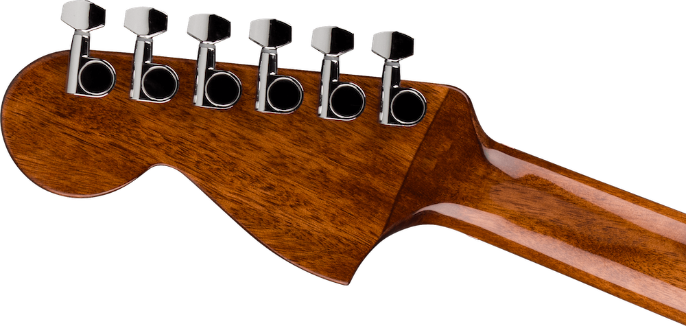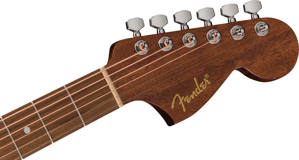 The orchestra shape is cherished for its comfortable mid-size body and detailed, balanced tone, making it an ideal choice for soloists and students alike. The California Standard Monterey E features resilient laminate construction with a spruce top and sapele back and sides for impressive and satisfying tonal character, while a 25 ½” scale neck with a slim “C”-shaped profile provides an inviting and effortless playing feel. The onboard Fender electronics provide high-quality output for live amplification, recording and effects, as well as a convenient onboard digital tuner. Other noteworthy details include an oiled walnut fingerboard and bridge, sealed gear tuning machines for smooth and accurate tuning action, and a sleek long-lasting gloss finish. • Orchestra body shape