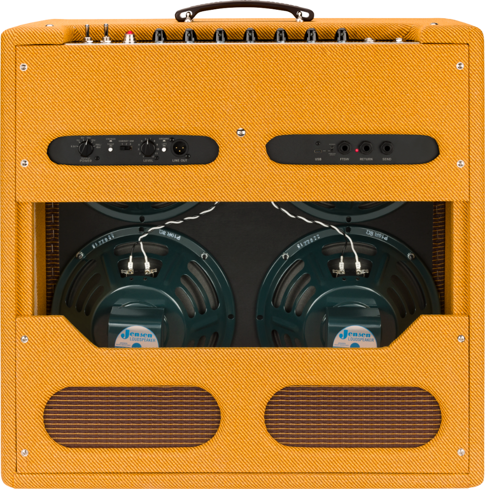The Tone Master ’59 Bassman amplifier uses massive digital processing power to achieve a single remarkable feat: faithfully modeling the circuitry and 45-watt power output of an original Bassman tube amp. Using a high-performance class D power amp to achieve the headroom and dynamics of the tube amp, the result is pure Bassman tone that’s virtually indistinguishable from the original. This remarkable Fender technology is paired with the sparkle and touch sensitivity of four Jensen P-10R speakers, as well as player-centric additions like convolution spring reverb, a vintage/tight switch for smoother bass response and a post-power amp effects loop. Other features include an output power selector for full power and five attenuated settings, impulse response (IR) XLR line output for detailed cabinet simulations, mute switch, and lightweight pine cabinet. • MFSKU 2274500000 • UPC 717669966904