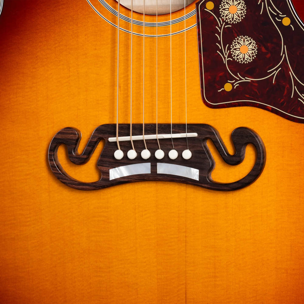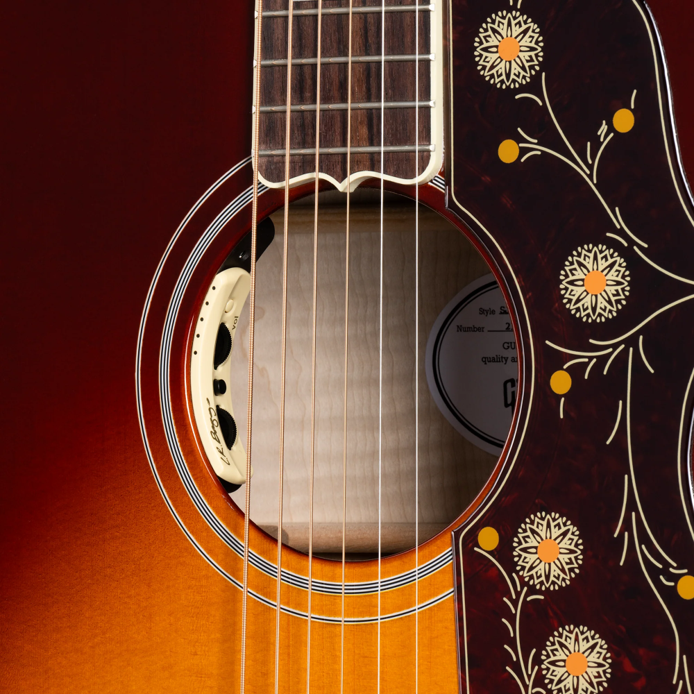 The legacy of Gibson’s “King of the Flat-Tops” lives on in the SJ-200 Standard. From its inaugural appearance in 1937, Gibson’s SJ-200 set an unmatched standard. The SJ-200 continues a legacy of the world’s most famous acoustic guitar, and certainly one of the most popular. The body features gorgeous flame maple and is finished in your choice of Wine Red or Autumnburst. It comes equipped with gold Grover Rotomatic tuners, a TUSQ nut, saddle, and bridge pins, and it is stage and studio-ready with an internal LR Baggs Anthem mic/pickup system. A Gibson hardshell case is included. In stock now at Twin Town Guitars in Minneapolis.. Minnesota! 612-822-3334 or guys@twintown.com! • MFSKU MCJB20AB • UPC 711106056326