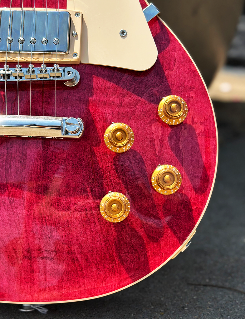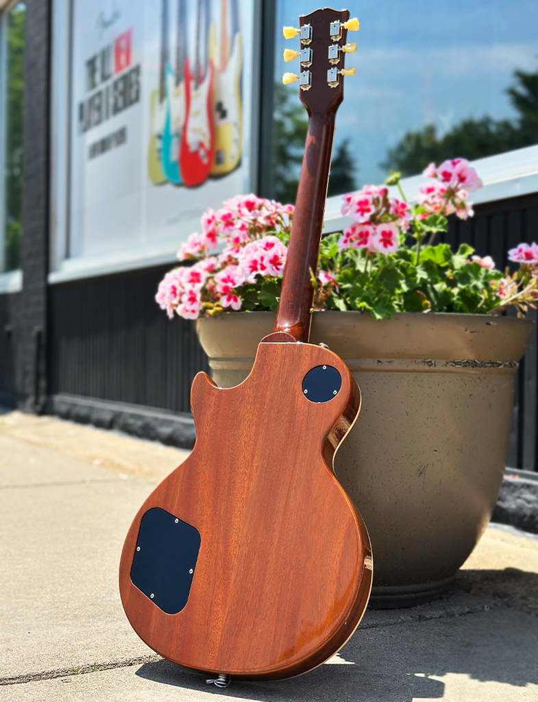 The Les Paul™ Standard 50s Figured Top returns to the classic design that made it relevant, played, and loved – shaping sound across generations and genres of music. It pays tribute to Gibson's Golden Era of Innovation and brings authenticity back to life. It boasts a solid mahogany body, an AA figured maple top, and a distinctive translucent custom color nitrocellulose lacquer finish that showcases the figured maple top. The mahogany neck has a rounded 50s Vintage profile and a rosewood fingerboard with trapezoid inlays. The Les Paul Standard 50s Figured Top is equipped with an ABR-1, the classic-style Tune-O-Matic™ bridge, an aluminum Stop Bar tailpiece, Vintage Deluxe tuners with Keystone buttons, and gold Top Hat knobs. The calibrated Burstbucker™ 1 (neck) and Burstbucker 2 (bridge) pickups are loaded with Alnico 2 magnets and wired to audio taper potentiometers and Orange Drop® capacitors. A hardshell case is also included.