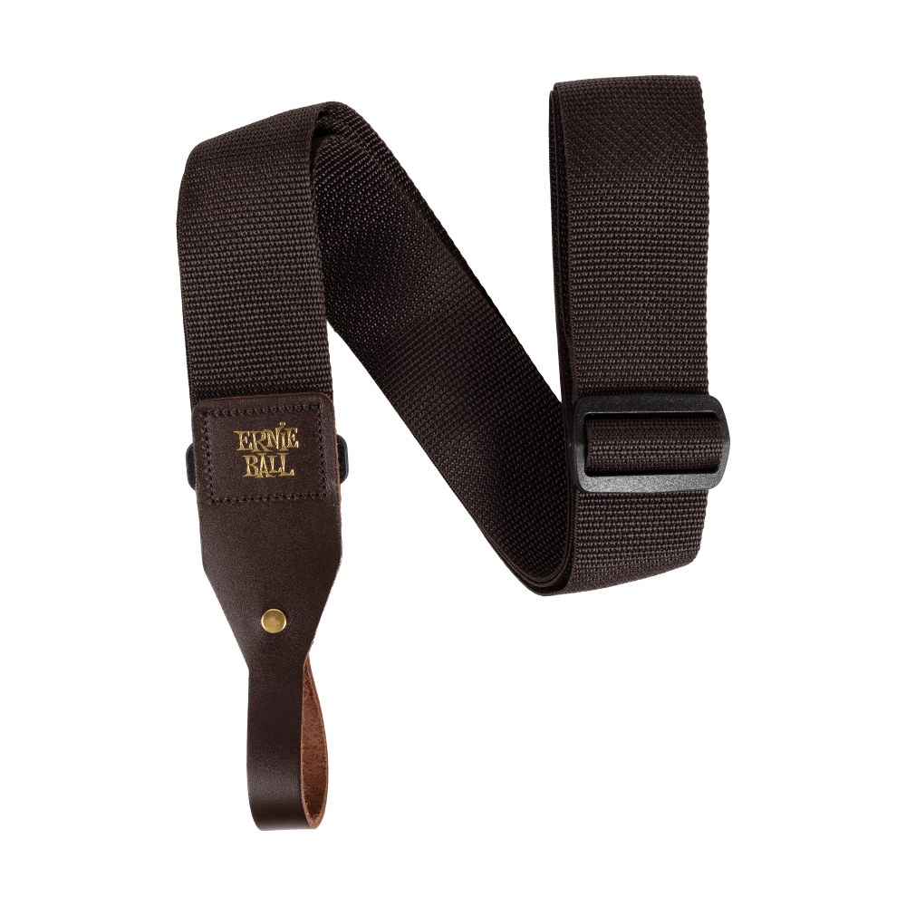 The Ernie Ball Acoustic polypro strap features durable and comfortable 2” wide Polypropylene webbing with machine-stitched leather ends (EB logo stamped in gold print) for maximum strength and longevity. The Ernie Ball embossed leather end features an extended 6 1/2” x ¾3/4” leather loop for use with acoustic guitars and other instruments without a neck heel strap button. The Black Delrin adjustable buckle and connector further enhance durability and good looks. Overall strap measures 41 inches to 72 inches long. • MFSKU P05366 • UPC 749699119661
