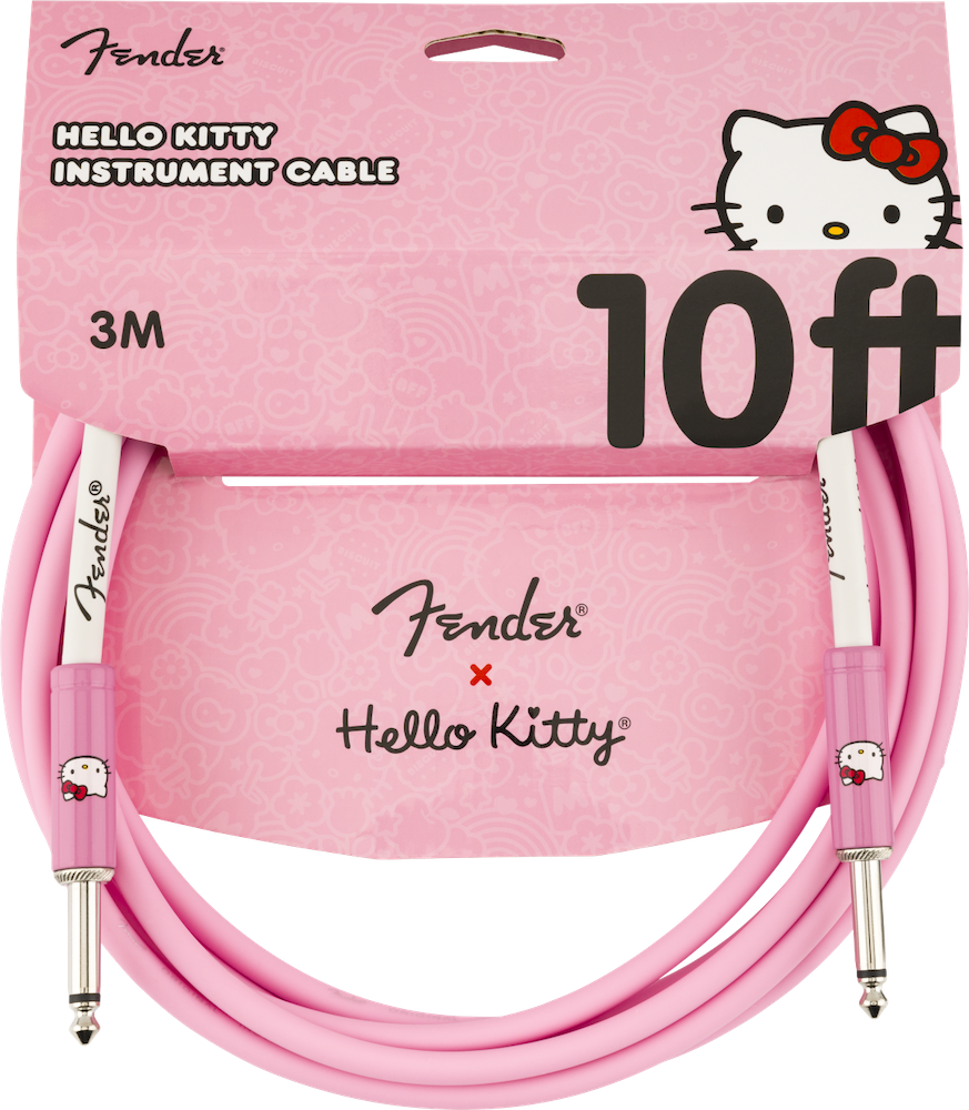 Featuring a bold pink PVC jacket and Hello Kitty herself printed on the custom cable ends, the Fender x Hello Kitty instrument cable is constructed with durable nickel-plated connectors and spiral shielding for sonic transparency. With its charming style and dependable performance, this cable is not just a fashion statement but a must-have accessory for any Hello Kitty fan's collection! • 10' length • Hello Kitty Pink PVC • 8mm wire jacket provides reliable and solid construction • 23-gauge conductor offers improved signal path strength • 90% OFC spiral shielding for ultimate durability • Durable nickel-plated connectors • MFSKU 0990510156 • UPC 885978249398