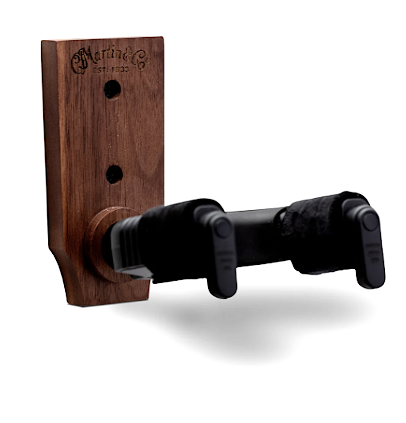 The Martin Guitar Wall Hanger is a stylish way to display your instrument at home or in the recording studio. The auto-locking feature actuates under the weight of the instrument, levels securely and the cushioned padding conforms and protects. Installation is easy with two screws anchoring securely to the wall. • Solid Wood Mount • MFSKU 18A0124 • UPC 729789625470