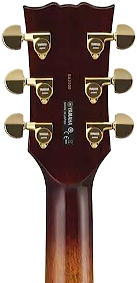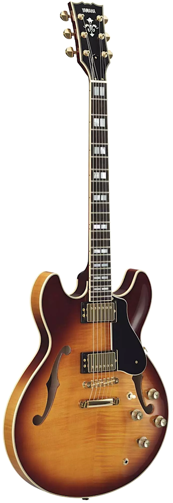 Unlock a world of rich tones and timeless style with the Yamaha SA2200 Semi-Hollowbody Violin Sunburst Electric Guitar. Crafted to perfection, this guitar combines vintage aesthetics with modern innovation to deliver an unparalleled playing experience. Featuring a classic semi-hollow double-cutaway design, the SA2200 boasts a laminated sycamore top and body with a soft maple center block, providing a perfect balance of warmth and brightness. Equipped with dual Alnico V humbuckers, this guitar delivers articulate and warm tones that are perfect for a wide range of musical styles. Enhancing its versatility, the SA2200 comes equipped with push/pull coil splits, allowing you to achieve spanky single-coil tones with ease. Whether you're playing jazz, blues, rock, or beyond, this guitar offers the flexibility you need to express yourself fully. With Gotoh tuners and a tune-o-matic bridge, the SA2200 ensures solid and stable performance, keeping you in tune and in control at all times. Whether you're performing on stage or recording in the studio, this guitar is ready to elevate your playing to new heights. Experience the legendary craftsmanship and exceptional tone of the Yamaha SA2200 Semi-Hollowbody Electric Guitar and unleash your creativity like never before. Now Includes Hard Case! • MFSKU SA2200 • UPC 086792523101