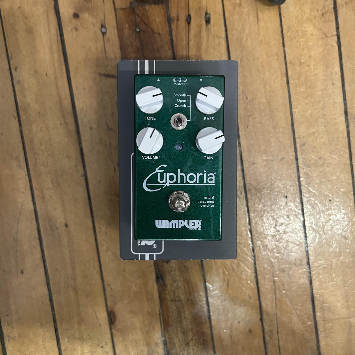 Used Wampler euphoria in excellent condition. The Wampler Euphoria is a transparent overdrive aiming for Dumble-like tones. A three-way switch toggles between Smooth, Open and Crunch (light fuzz) modes. This used euphoria has no cosmetic wear and functions as it should. Original box included.