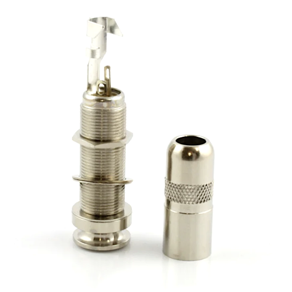 SWITCHCRAFT 3-CONDUCTOR END PIN JACK. Switchcraft stereo end pin jack with housing. Easily tighten the housing from inside the guitar for a simple installation. This end pin jack can be wired for a mono or stereo setting. Twin Town Guitars does guitar repairs on instruments, electronics, and do Plek work! • MFSKU EP-4161-B01 • UPC 645208080997