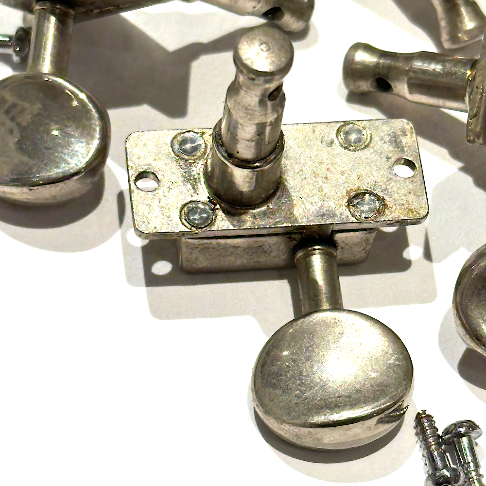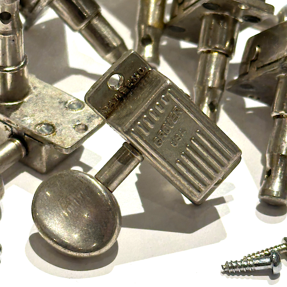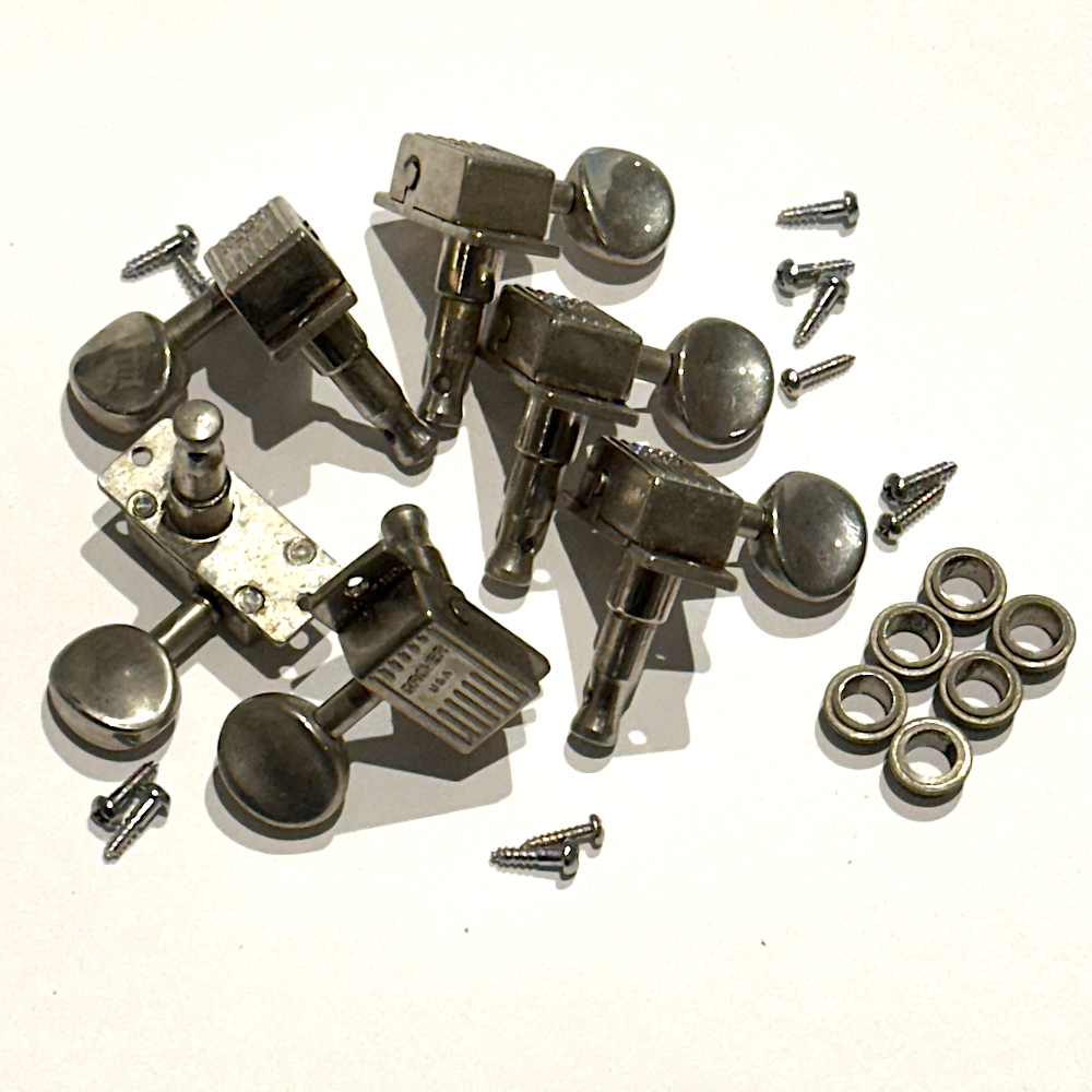A complete set of late 1960s Grover V100N Slimline Nickel Tuning machines, with bushings and screws - 3+3. Ready for that vintage guitar!