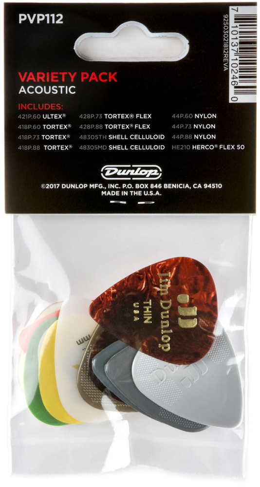 Looking to change up your acoustic guitar tone? Our Acoustic Pick Variety Pack is the best place to start your experimentation, featuring a selection of picks that perfectly complement the tone and playability of acoustic instruments. From warmer materials such as Nylon to brighter materials such as Ultex, this pack has all you need to refine your unplugged sound. • MFSKU PVP112 • UPC 710137102460