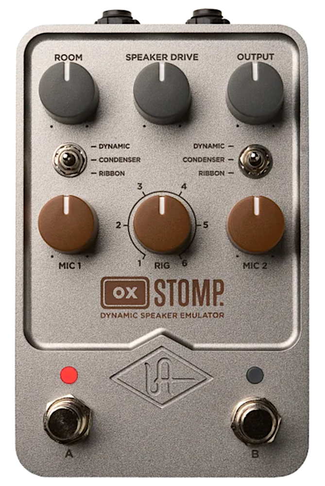 The speaker emulations go beyond the typical IR models, with speaker characteristics like Breakup and Cone Cry rendered in full detail. The pedal sports silent switching, a buffered bypass, and analog dry through functions as well as support for the 4-cable method via the OX Stomp's stereo inputs and outputs. With the built-in USB-C connection, you can control your whole pedal, including its numerous RIGs, cabs, and effects, via the convenient UAFX Control app, making it easier than ever to find the ideal sound for your performance. • MFSKU UA-OX-STOMP-U • UPC 819937003615