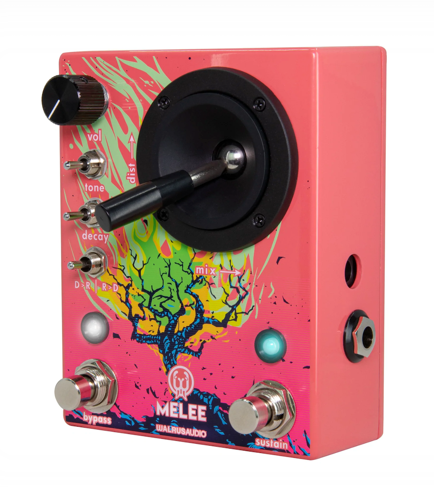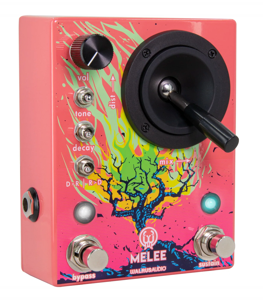 Wall of noise effects pedal. The Melee unapologetically uses a joystick to meld reverb and distortion into one massive blaze of sound. With the flip of the order switch, run the distortion into the reverb or reverb into distortion; signal chain is your call now. For the explorer, the Melee can run one of three different reverb programs Ambient, Octave, and Reverse. • MFSKU 900-1069 • UPC 810424034488