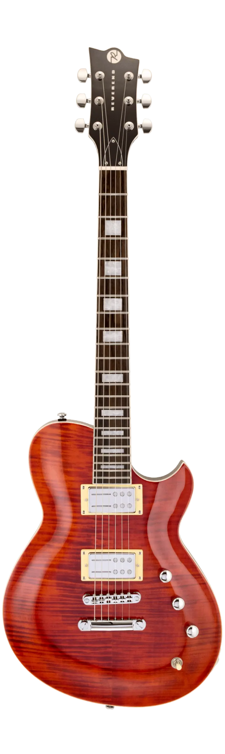 The Roundhouse wallops! The new Roundhouse RA is taking that wallop to another level! It’s the classic single cutaway reimagined for today’s player. This carved top set neck – a first for Reverend Guitars — has a massive tone but is lightweight and balanced. Every Roundhouse features a set of Railhammer Hyper Vintage Humbuckers, a flame maple top, a TOM stop-tail bridge, rosewood fretboards, and no pickguards. Perfect for all your rock-and-roll dreams!