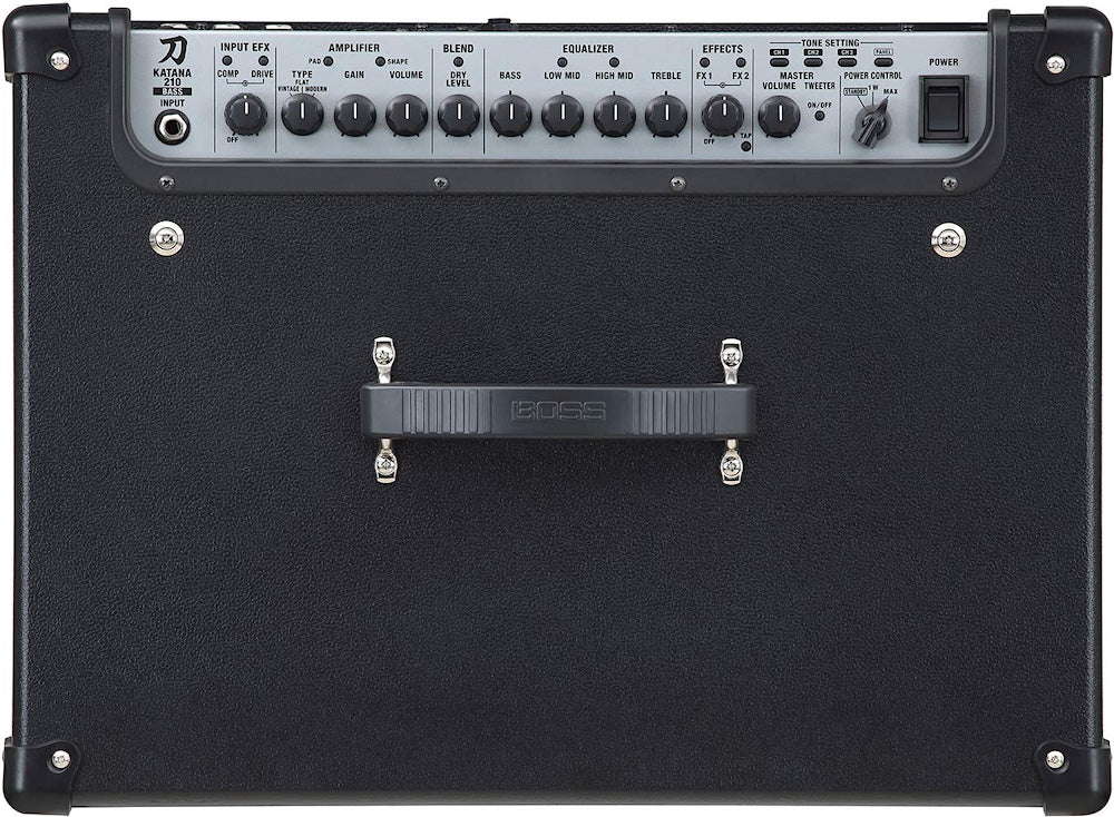 Crafted with the breakthrough design philosophy behind the acclaimed Katana guitar amp series, the Katana-210 Bass delivers premium sound and advanced features perfectly tuned for the needs of serious bassists. Three unique amp characters and onboard BOSS effects provide a wide range of tones, delivered with 160 watts of assertive class AB stage power and a high-performance speaker system based around two 10-inch woofers. And with comprehensive EQ, flexible connectivity, and more, the Katana-210 Bass is ready to take on any playing situation, from stage to studio to everyday practice at home. • MFSKU KTN210B • UPC 761294518458