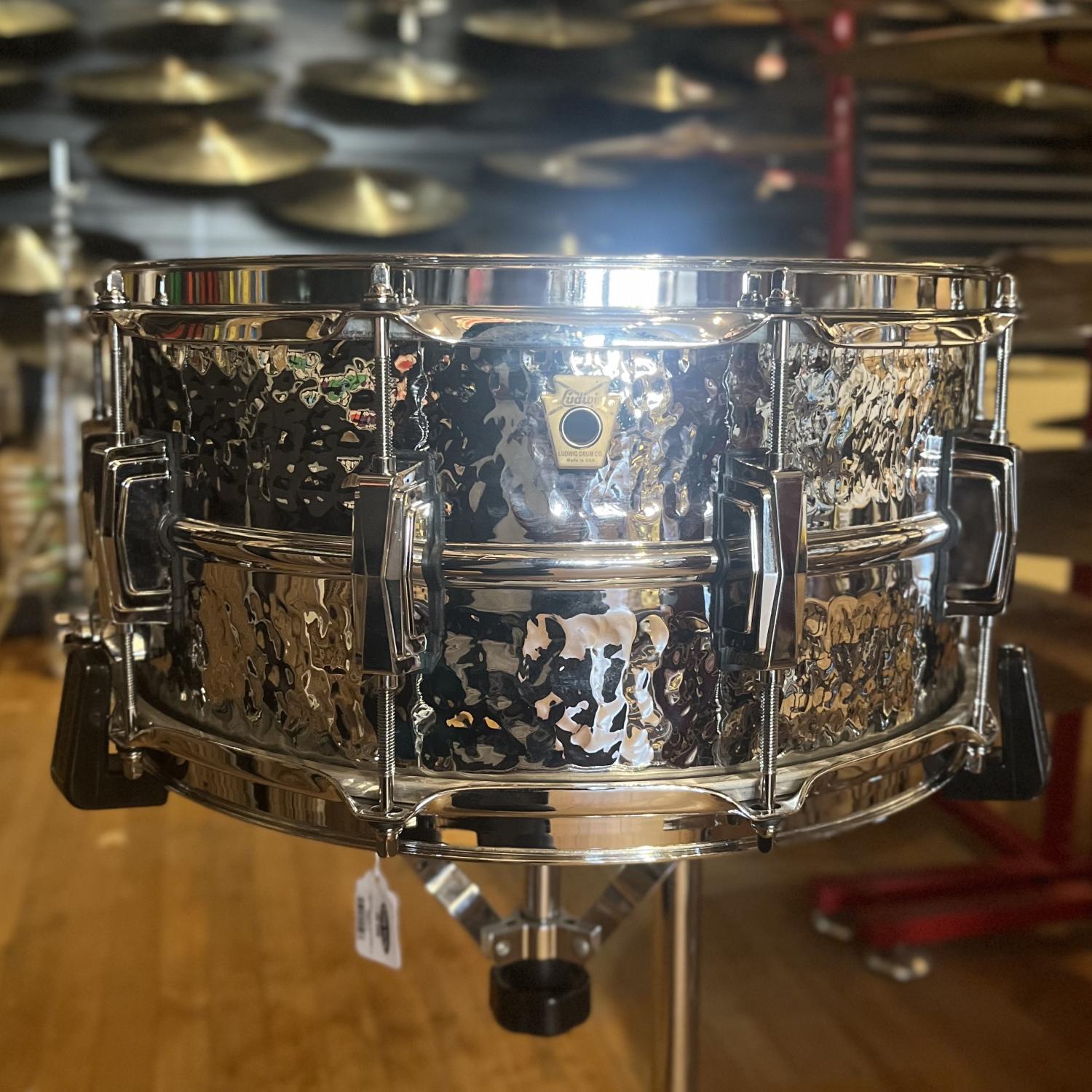 Ludwig's LM402K Hammered Supraphonic provides the perfect sound for the studio or the stage. The USA-made chrome-plated, seamless, beaded aluminum shell produces a bright, crisp attack with the perfect balance of full resonant tone and snare crack. This hammered version of the Supraphonic provides a drier, crisper attack.