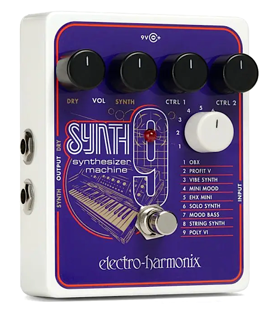 The polyphonic SYNTH9 Synthesizer Machine transforms your guitar or bass with 9 presets that were precisely tuned to emulate the most sought after, vintage synthesizer sounds ever! From searing lead synths to spacey synth pads and deep, funky, synth bass grooves, it’s all accessible. The SYNTH9 is also super easy to use with DRY volume, SYNTH volume, CTRL1 and CTRL2 knobs that provide precise control over each preset’s parameters. If you dig the kind of classic synth sounds made famous on recordings by groups like ELP, EVH, Kraftwerk, Joy Division, P-Funk, Peter Gabriel and more, we think you’ll love the SYNTH9. • MFSKU Synth 9 • UPC 683274011974