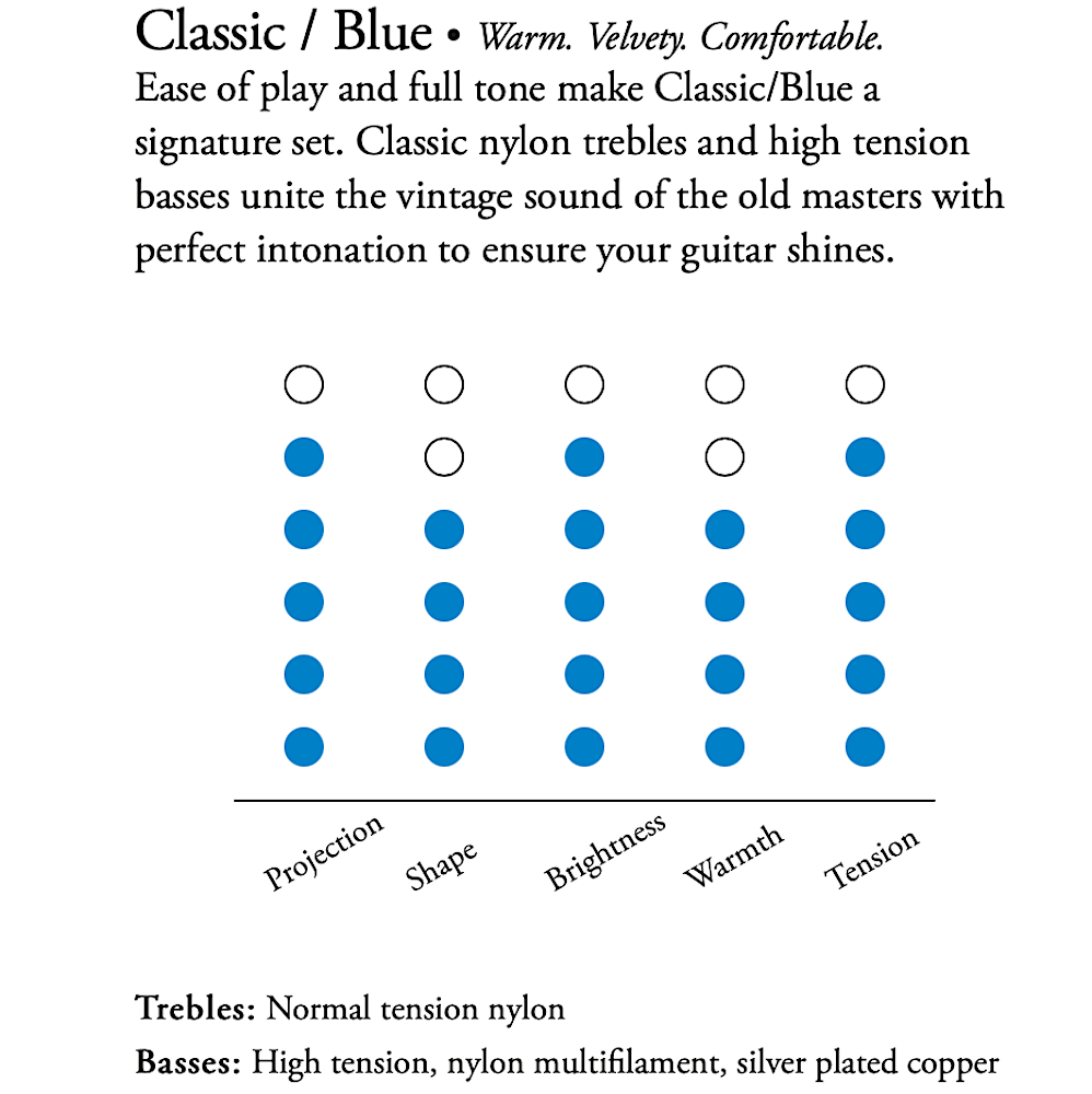 Augustine Blue Classical Strings, High Tension. Augustine Classical Strings are designed to give you endless possibilities that will best suit your particular needs. The best way for you to decide which of our strings sets will sound best on your guitar is simple: try them and let your ears be the judge. • MFSKU AUGB • UPC 639690002027