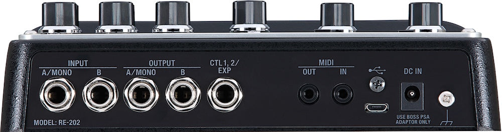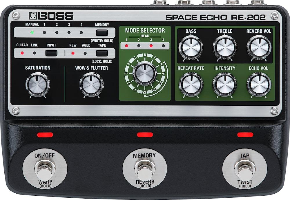 Realized through the latest technologies and exhaustive analysis of several vintage RE-201s - including a pristine original unit from the BOSS and Roland factory archive - the RE-202 brings the complete Space Echo experience to life in a versatile modern pedal. While previous BOSS designs captured the true sonic flavor and essential characteristics of the Space Echo, new advancements have allowed us to go much deeper than ever before. With the RE-202, our engineers have fully reproduced all the complex, non-linear behaviors that contribute to the RE-201’s immortal character. Everything that influences the sound was carefully examined and recreated with all-new algorithms, including the tape path, record/playback mechanism, motor variations, preamp coloration, tape age, spring reverb character, and more. • MFSKU RE-202 • UPC 761294519011