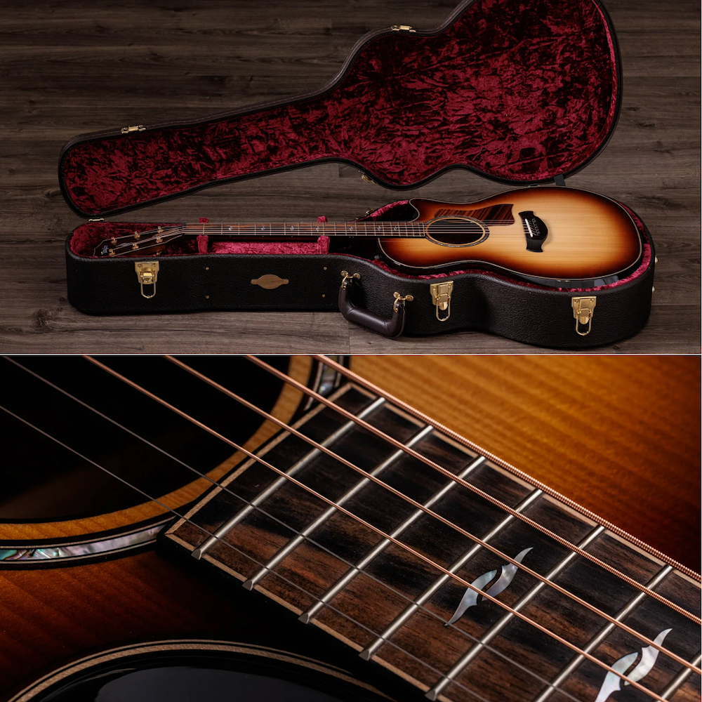 With its comfort-focused design sensibility, top-tier tonewoods and striking details, this Builder's Edition 814ce represents a new phase of evolution for Taylor's flagship guitar. This Grand Auditorium acoustic-electric takes a beloved wood pairing to the next level with Honduran rosewood and Adirondack spruce, combining low-end warmth and treble clarity with even more harmonic complexity and headroom. The result is a lush, richly textured voice that remains articulate even with the most aggressive attack, with blooming overtones and unmatched sustain delivering an exceptionally robust musical character that performs beautifully across playing styles and applications. Builder's Edition contours include chamfered body edges, a beveled armrest and matching cutaway, and a smooth Curve Wing bridge. Along with Taylor's signature easy-playing neck, players can expect a remarkably comfortable, accommodating experience that's sure to provide endless inspiration. This model features premium appointments such as Element fretboard inlays in shell and mother of pearl, a rosewood pickguard, Gotoh 510 antique gold tuning machines, and a full-body gloss finish with a Kona edgeburst for the back and sides and a complementary burst treatment for the top. • MFSKU BE814ceHonRAdS • UPC 887766135715