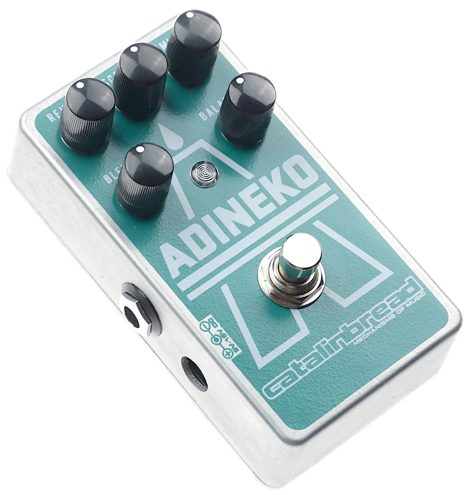Oh!.. The Catalinbread Adineko, Oil Can Delay. Oil can delay units were manufactured by a company named Tel-Ray who later became better known as Morley. They employed an electro-static storage method where the signal is “recorded” to a spinning disk, a layer of oil (for years rumored to be a mysterious carcinogenic oil) prevented this signal from leaking into the air before a “pickup” moments later played back the signal recorded to the disk. Compared to the counterparts of the day (tape, drum, wire delay machines), their sound was more low fidelity, murky, often with a more consistent musical vibrato that correlated to the spinning disk speed. Sound is described as mysterious.. The Catalinbread ADINEKO pedal is an echo, reverb, vibrato pedal that faithfully models the sonic experience of these oil can units. unitss.. unitsss... • MFSKU Adineko • UPC 853710004314