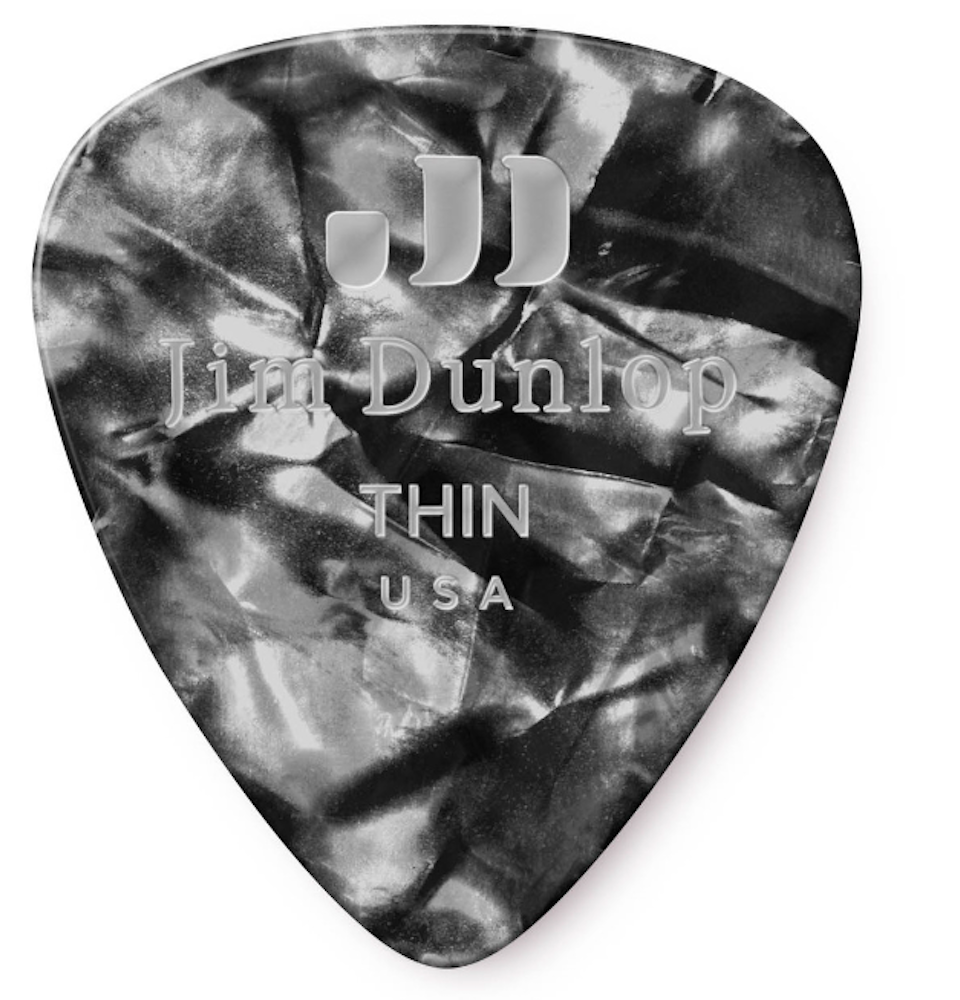 Dunlop Celluloid 351 Thin Black Pearloid Guitar Picks - 12-Pack