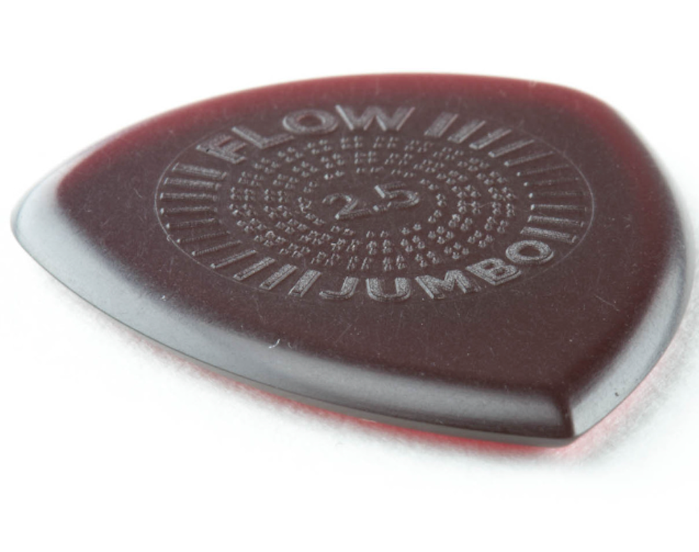 Flow Picks add thickness and volume to each note you play while allowing every pick-stroke to fall smoothly and effortlessly from your strings thanks to bright, durable Ultex material, a wide angle and sharp tip to focus your attack, a uniform bevel that reduces string drag, and a low-profile grip just the right amount of control. • MFSKU 547-250 • UPC 710137108431