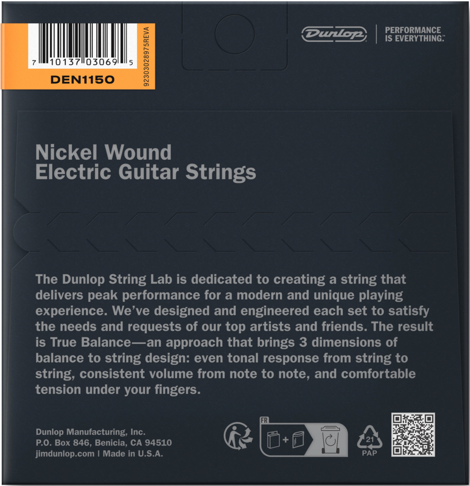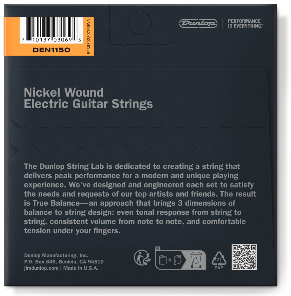 These nickel wound strings deliver crisp highs, aggressive mids, and a focused low end for dynamic lead work and chords that ring out clearly whether clean or heavily distorted. Gauges: 11 - 14 - 18 - 28 - 38 - 50 Made in the USA. • MFSKU DEN1150 • UPC 710137030695