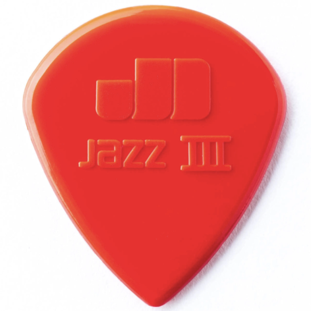 It's no wonder the Jazz III Nylon Pick has gained such a huge following among a variety of the world's top guitar players—its very shape is designed to let your technique take over. With a small profile, quick-release molded edge, and a sharp tip, the Jazz III gives you the control you need to play with speed and precision while notes ring out with clarity. Available in the warm sounding Red Nylon or the brighter, more aggressive sounding Black “Stiffo”. • MFSKU 47R3N • UPC 710007002609