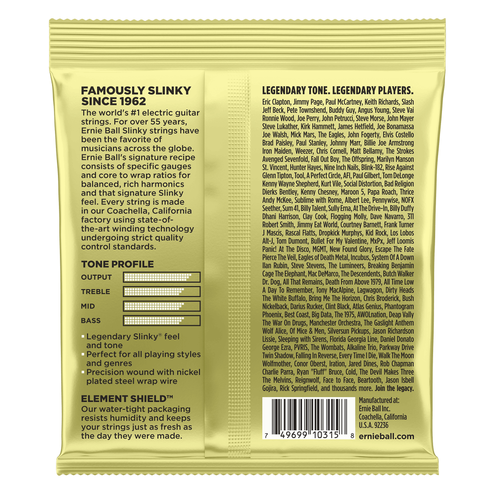 Ernie Ball Nickel Wound Electric Guitar Strings are made from nickel plated steel wire wrapped around tin plated hex shaped steel core wire. The plain strings are made of specially tempered tin plated high carbon steel producing a well balanced tone for your guitar. Gauges .012, .016, .024w, .034, .048, .062 • MFSKU P02214 • UPC 749699103158