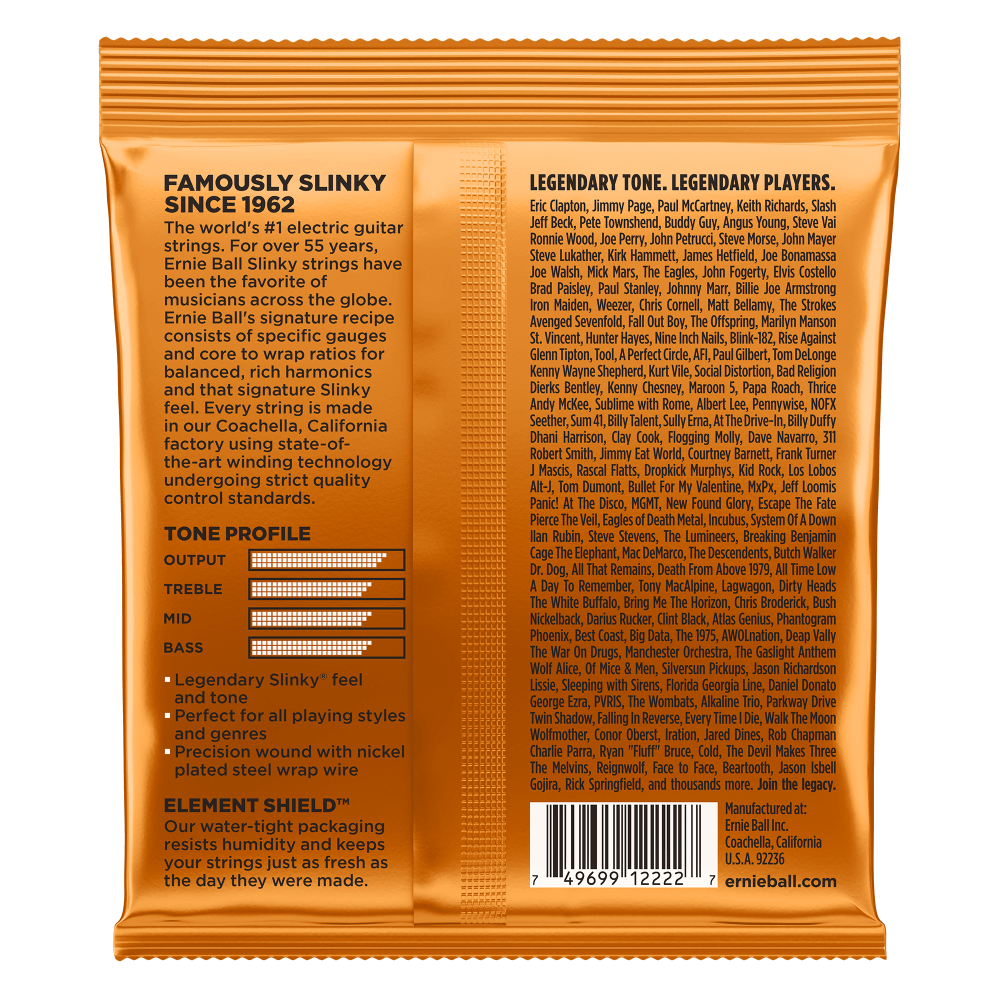 Ernie Ball Hybrid Slinky 2222 9/46 Ernie Ball Hybrid Slinky Electric Strings are a perfect match for those who like the ability to combine the combination of Super and Regular Slinkys. These strings are precision manufactured to the highest standards and most exacting specifications to ensure consistency, optimum performance, and long life. Hybrid Slinky wound strings are made from nickel plated steel wire wrapped around a hex shaped steel core wire. The plain strings are made of specially tempered tin plated high carbon steel; producing a well balanced tone for your guitar. Gauges .009 .011 .016 .026 .036 .046 • MFSKU P02222 • UPC 749699122227