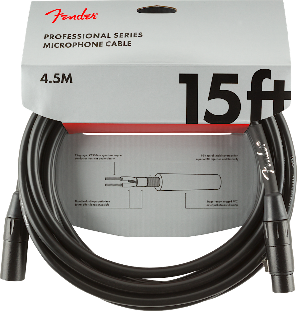 Fender 15' Professional Series Black Microphone Cable