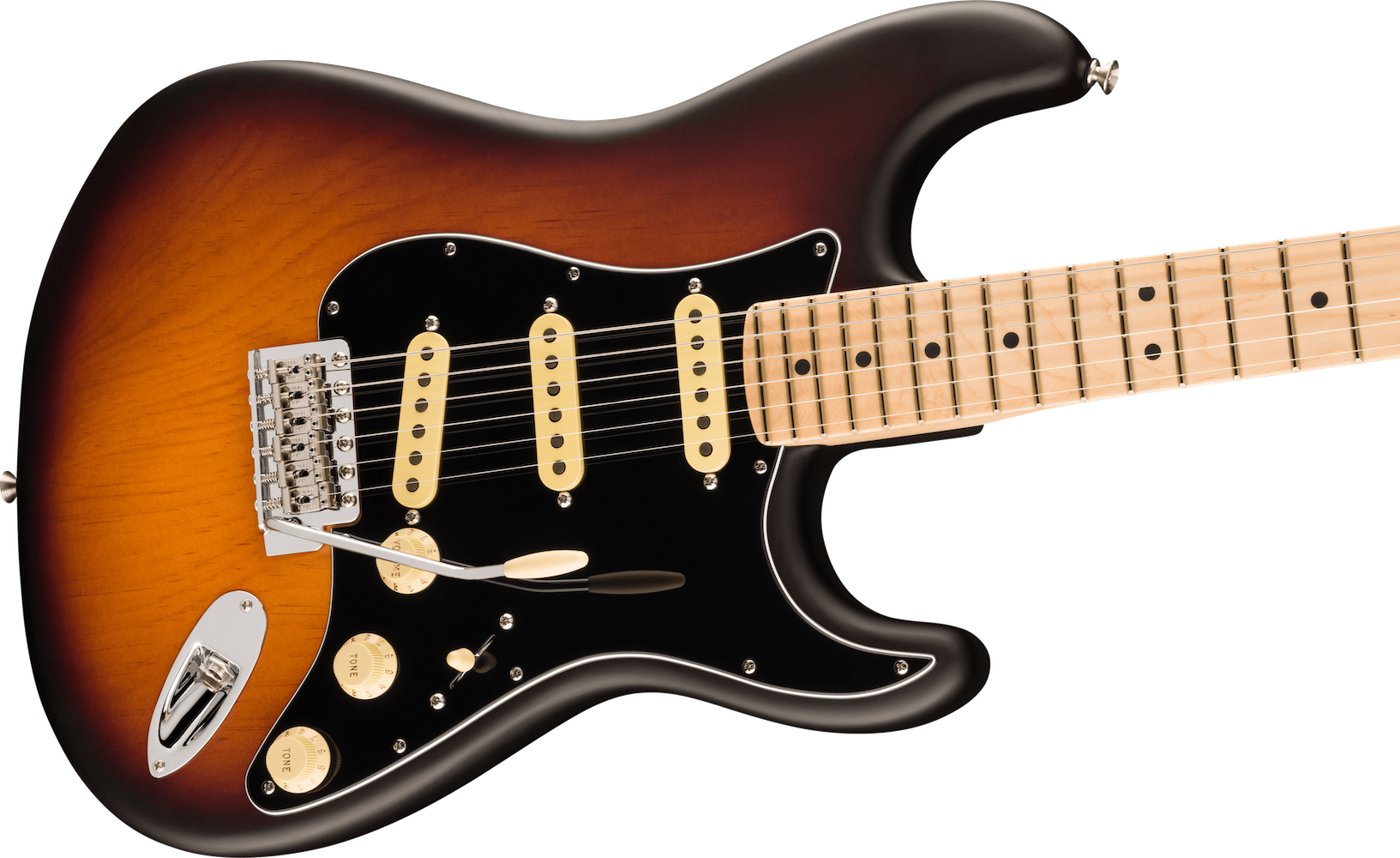 Electric guitar with a sunburst finish on a white background