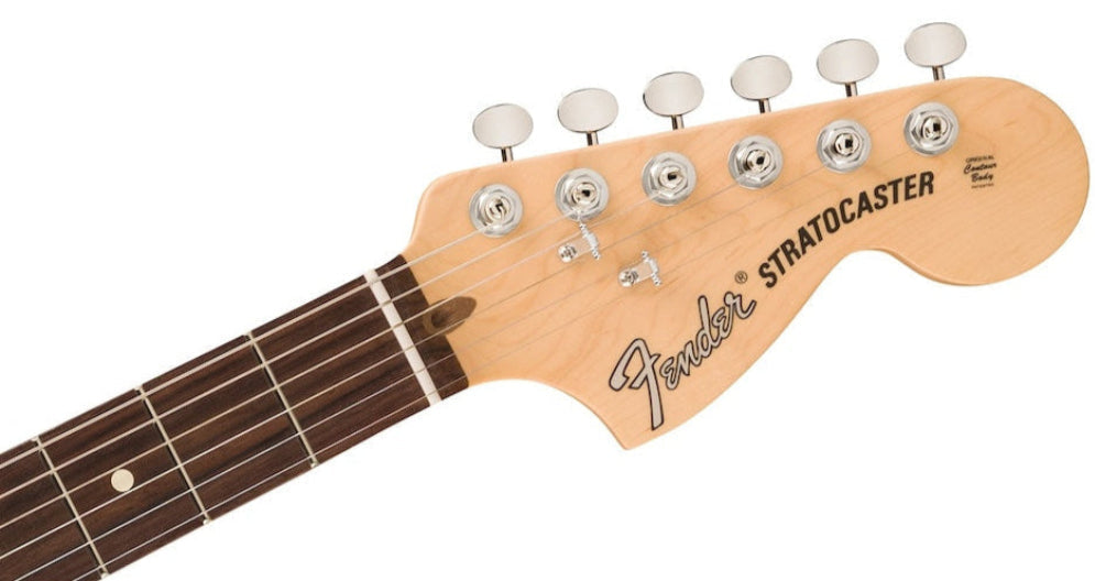 Spruce! Born in Corona, California, the Limited Edition American Performer Timber Stratocaster delivers the exceptional tone and feel you expect from an authentic Fender. This guitar features a trio of Yosemite single-coil pickups, designed for rich, expressive tones. With flat-staggered pole pieces to increase output and a shellac coating that lets the coil breathe while controlling feedback, Yosemite pickups produce dynamic sounds ideal for any musical situation. A push-pull tone control adds the neck pickup in any switch position, unlocking new, musically useful tones. The “Modern C”- shaped neck sports a 9.5”-radius fingerboard that’s comfortable for almost any playing style, along with 22 jumbo frets for effortless and accurate bending. This Limited Edition American Performer Timber Stratocaster is available in spruce tonewood with a honeyburst finish. • MFSKU 0171030742 • UPC 885978094011
