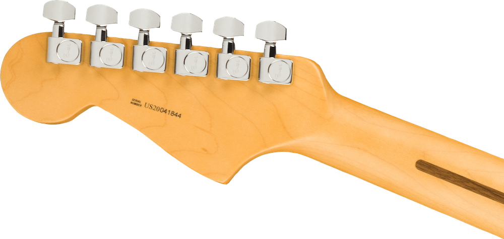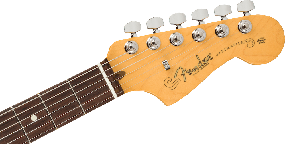 The American Professional II Jazzmaster draws from more than sixty years of innovation, inspiration and evolution to meet the demands of today’s working player. A popular Deep "C” neck now sports smooth rolled fingerboard edges, a “Super-Natural” satin finish and a newly sculpted neck heel for a supremely comfortable feel and easy access to the upper register. New V-Mod II Jazzmaster single-coil pickups are more articulate than ever while delivering the sparkle and chime the Jazzmaster is known for. The bridge pickup has a tap function that allows both a powerful, throaty sound or a lower-output vintage sound. At the flip of a switch, the rhythm circuit puts both pickups in series for a thicker tone with increased output, controlled by independent volume and tone roller pots. The new Panorama Tremolo system with pop-in tremolo arm dramatically increases the range of vibrato available, allowing for deep, Strat-style dives, in addition to classic Jazzmaster warble. • MFSKU 0113970700 • UPC 885978436187