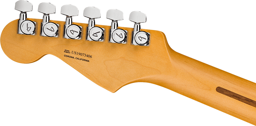 Ultra... American Ultra. Fender's most advanced series of guitars and basses for discerning players who demand the ultimate in precision, performance and tone. The American Ultra Stratocaster features a unique “Modern D” neck profile with Ultra rolled fingerboard edges for hours of playing comfort, and the tapered neck heel allows easy access to the highest register. A speedy 10”-14” compound-radius fingerboard with 22 medium-jumbo frets means effortless and accurate soloing, while the Ultra Noiseless Vintage pickups and advanced wiring options provide endless tonal possibilities – without hum. The sculpted rear body contours are as beautiful as they are functional and the S-1 switch adds the neck pickup in to any switch position. This versatile, state-of-the-art instrument will inspire you to push your playing to new heights. Other features include sealed locking tuning machines, chrome hardware and bone nut. Includes premium molded hardshell case. • MFSKU 0118010781 • UPC 885978194766