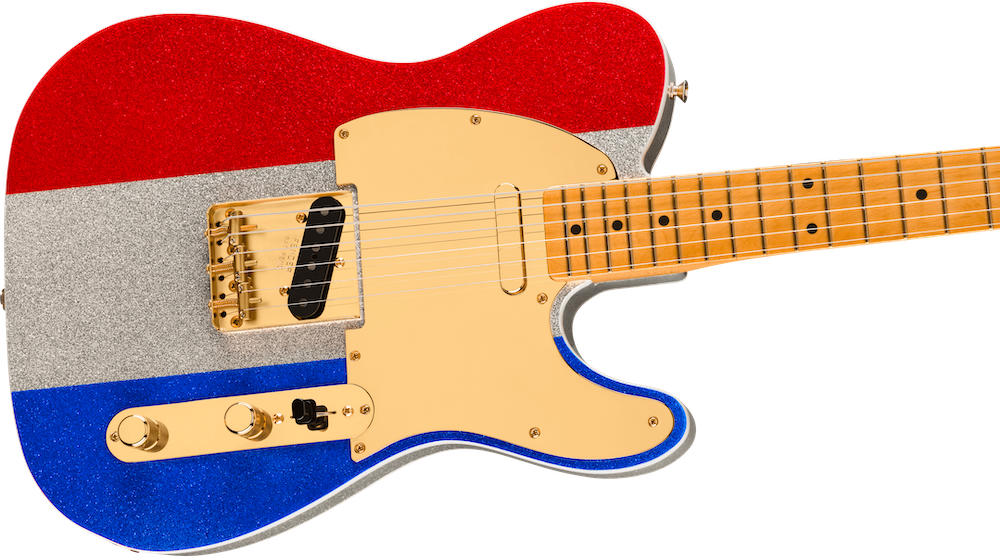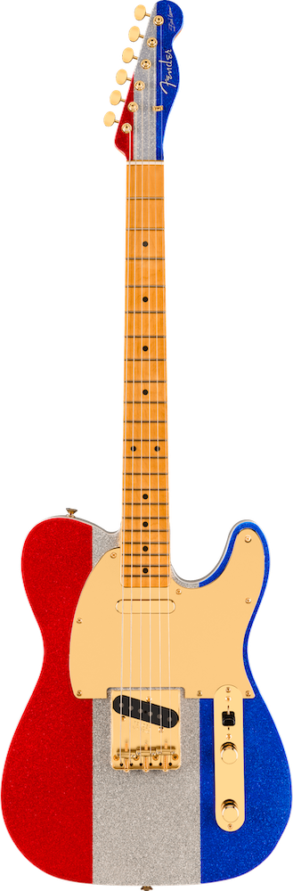 Based on Buck's own custom Tele played throughout his innovative career and into the Hee Haw years. • Double-Bound Alder Body • Red, Silver and Blue Sparkle Finish with Matching Painted Headstock • Late ‘50s “C”-Shaped Maple Neck with 7.25” Radius Fingerboard and Vintage Frets • Vintage-Style Early-'50s Tele Pickups • Vintage-Style 3-Saddle Bridge with Barrel Brass Saddles • Gold Hardware • Includes Deluxe Black Hardshell Case with Black Interior • MFSKU 0140452371 • UPC 885978888306