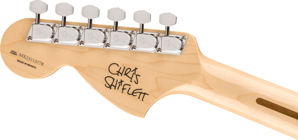 Chris Shiflett has his feet firmly planted in two worlds, with impeccable punk/hard rock credentials as longtime guitarist in the Foo Fighters and with an authentic love for country, as heard in Chris Shiflett & the Dead Peasants. His abiding love for the Telecaster guitar and for huge humbucking sound comes together in one kickass instrument with his name on it: the Chris Shiflett Telecaster Deluxe. Modeled on his favorite '72 Tele Deluxe, it's an especially affordable beauty that rocks hard with authentic Fender tone. Fender Chris Shiflett Signature Telecaster Deluxe with Hard Case. • MFSKU 0142400744 • UPC 885978612345