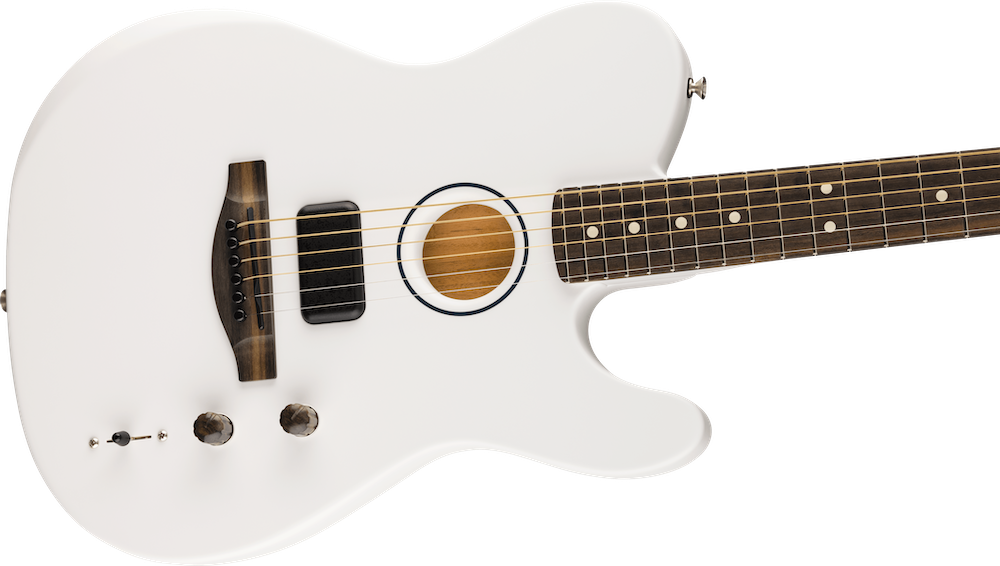 • Three-pickup system: Fender Acoustasonic Shawbucker magnetic pickup, Fishman undersaddle transducer and body-sensing pickup